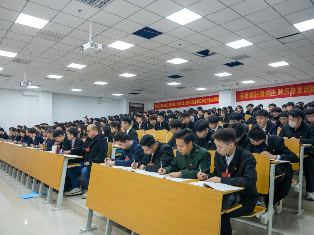 牢记嘱托跟党走,挺膺担当开新局。12月13日,共青团山东化工职业学院第一次代表大会暨第三次学生代表大会隆重召开。共青团潍坊市委副书记郭宴铭,学校党委书记孔祥奴、党委副书记潘慧、常务副校长冯喜成、工会主席葛彩霞,山东海事职业学院团委副书记赵雨婷出席开幕式。大会由团委书记朱怀红主持。各学院主要负责人、全体团学代表参加会议,以饱满的热情和高度的责任感,共谋蓝图,共绘发展。