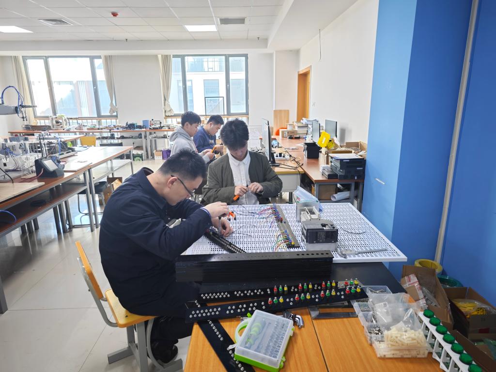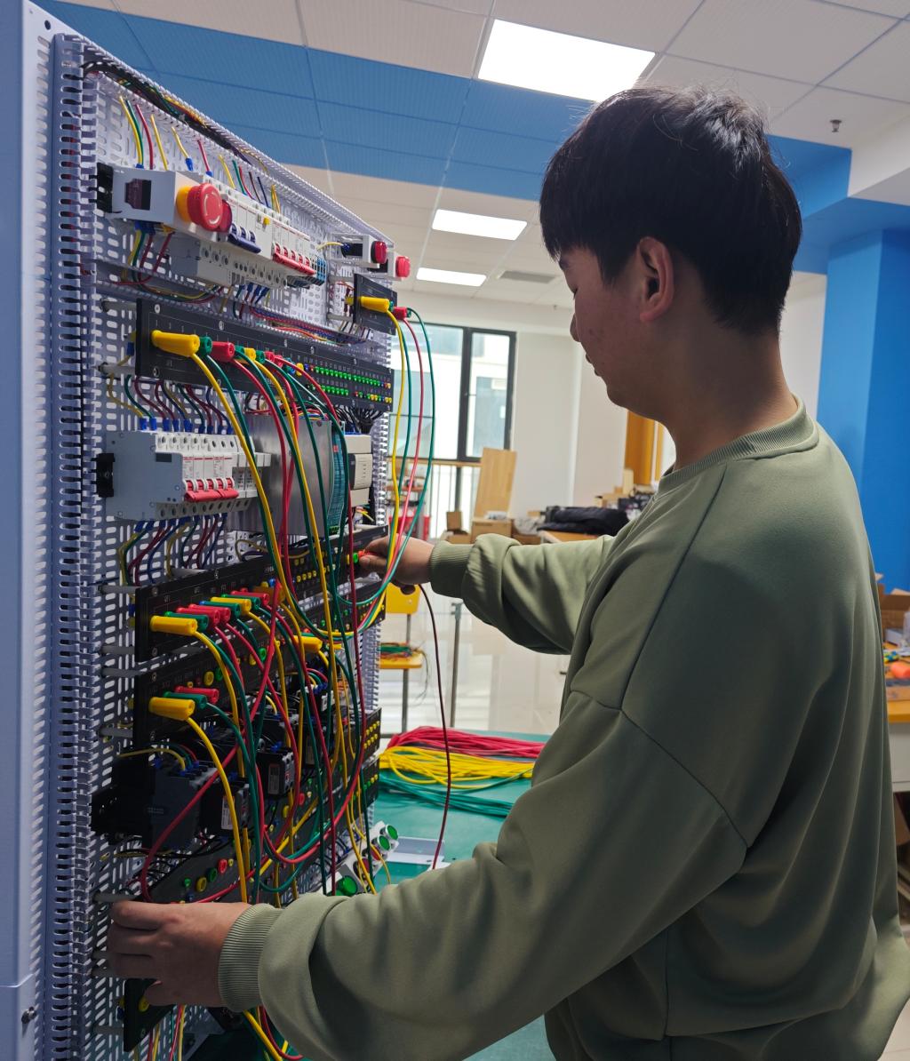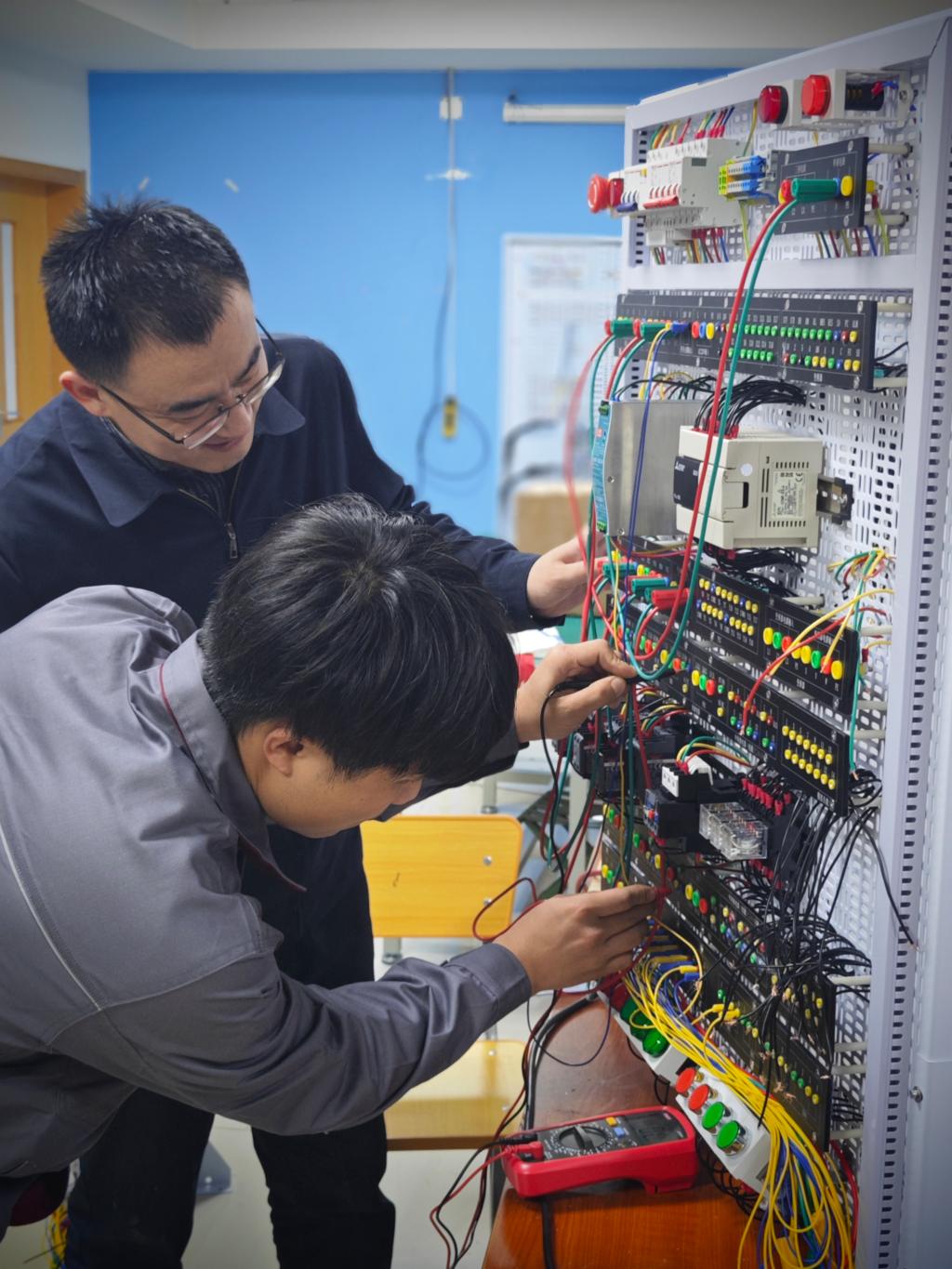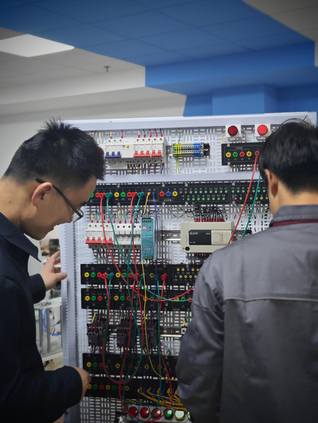 2024年1月8日到1月21日,我校机电工程学院按照山东省春季高考机电技术类专业技能测试标准,经过性能研发、图纸设计、设备装调、测试调试、加工制作等过程,自主研制生产出6台电气控制与PLC实训整装设备。目前该整装设备已顺利通过验收、交付春考中心,并在即将开展的山东省春季高考机电技术类专业技能测试中投入使用。