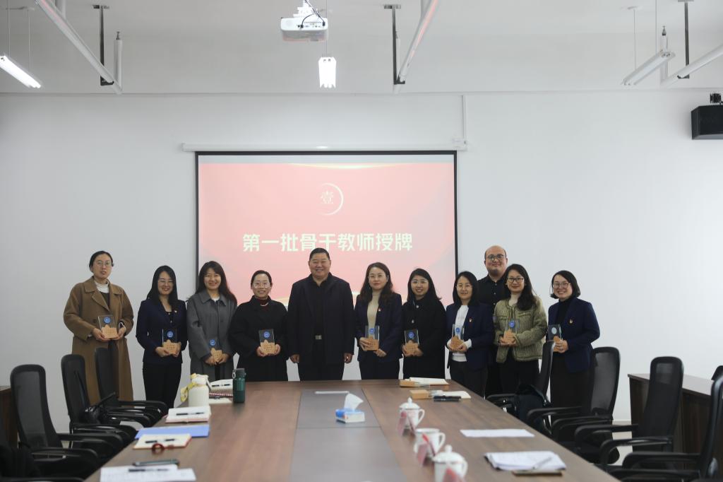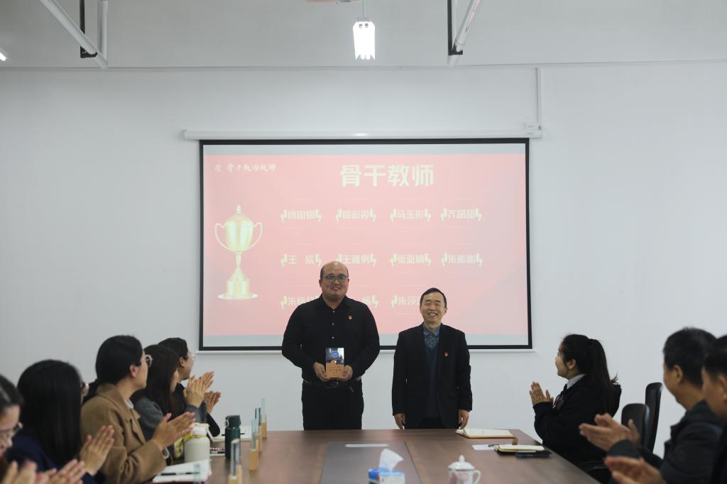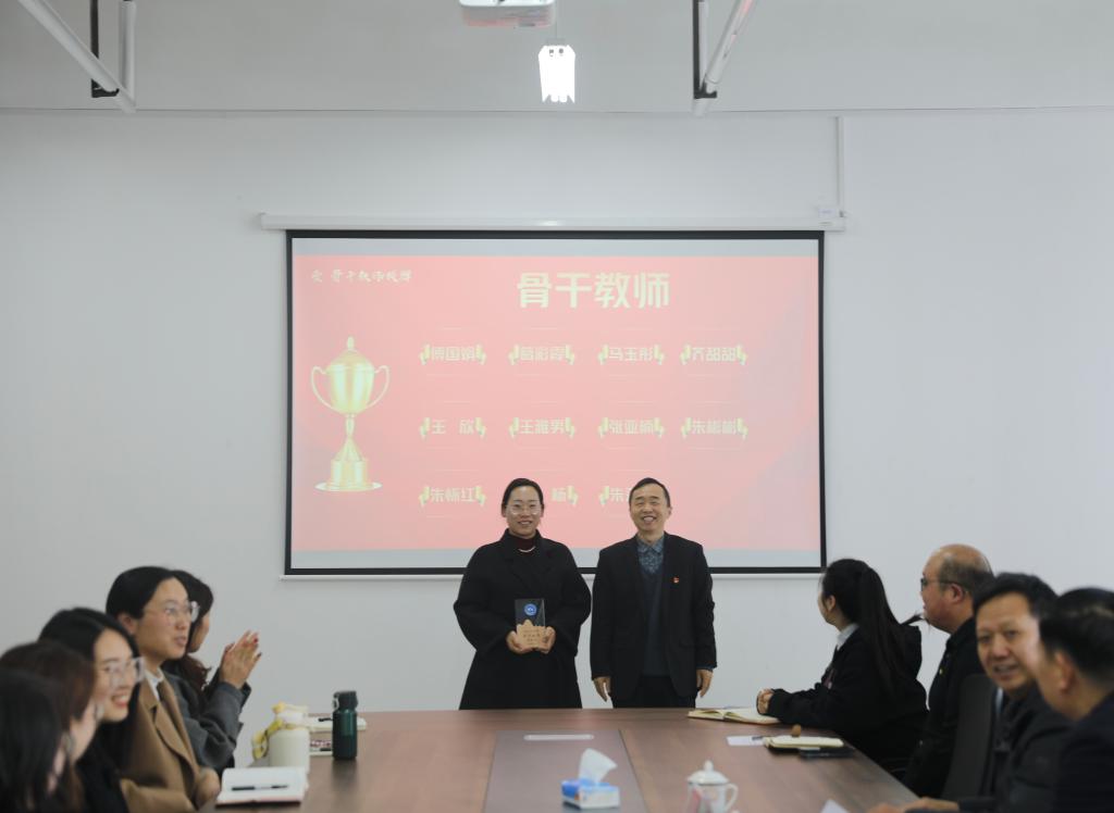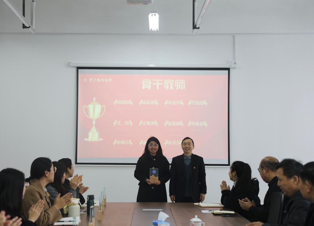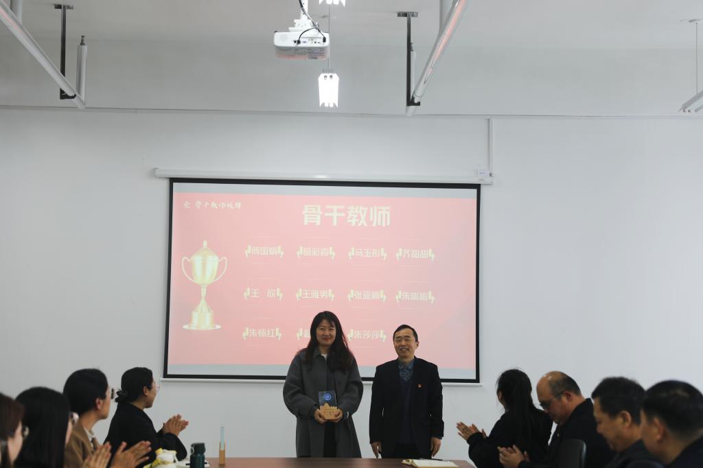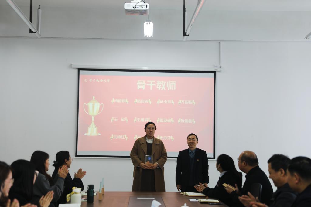 冯喜成副校长为第一批骨干教师授牌,潘慧副书记为金牌辅导员授牌。骨干教师代表王雅男和金牌辅导员代表赵杨分别作表态发言,他们将发挥榜样引领作用,凝心聚力,踔厉奋发,全力推动学校教育事业的高质量发展。