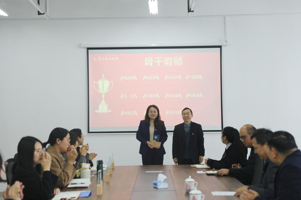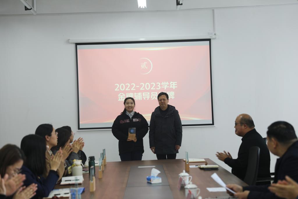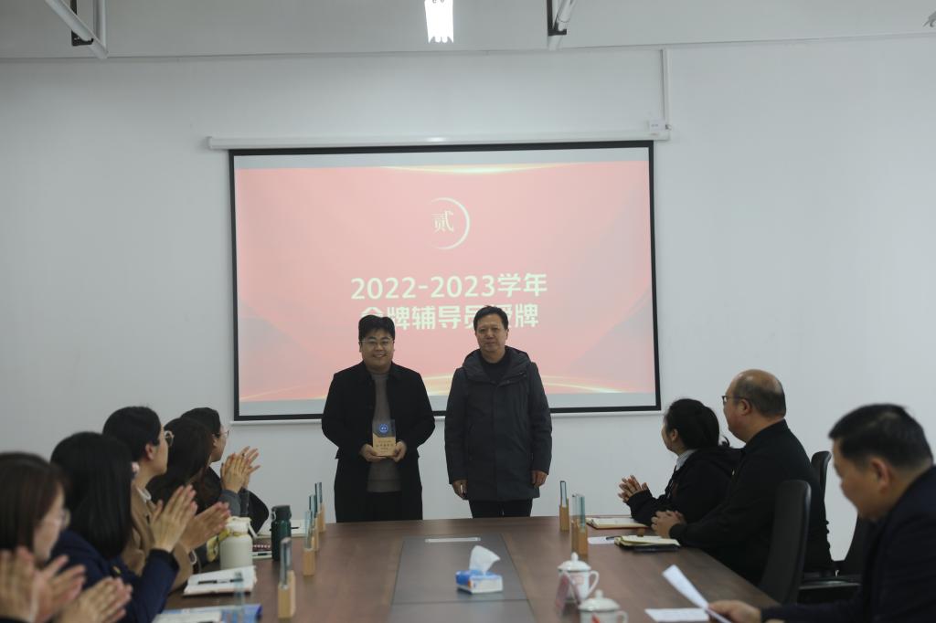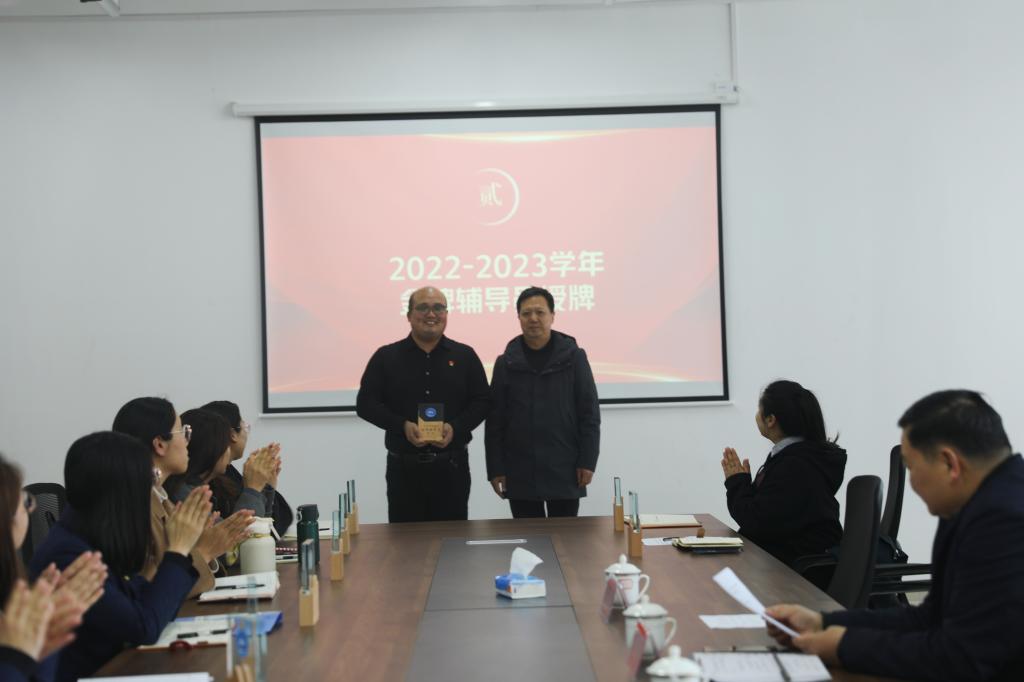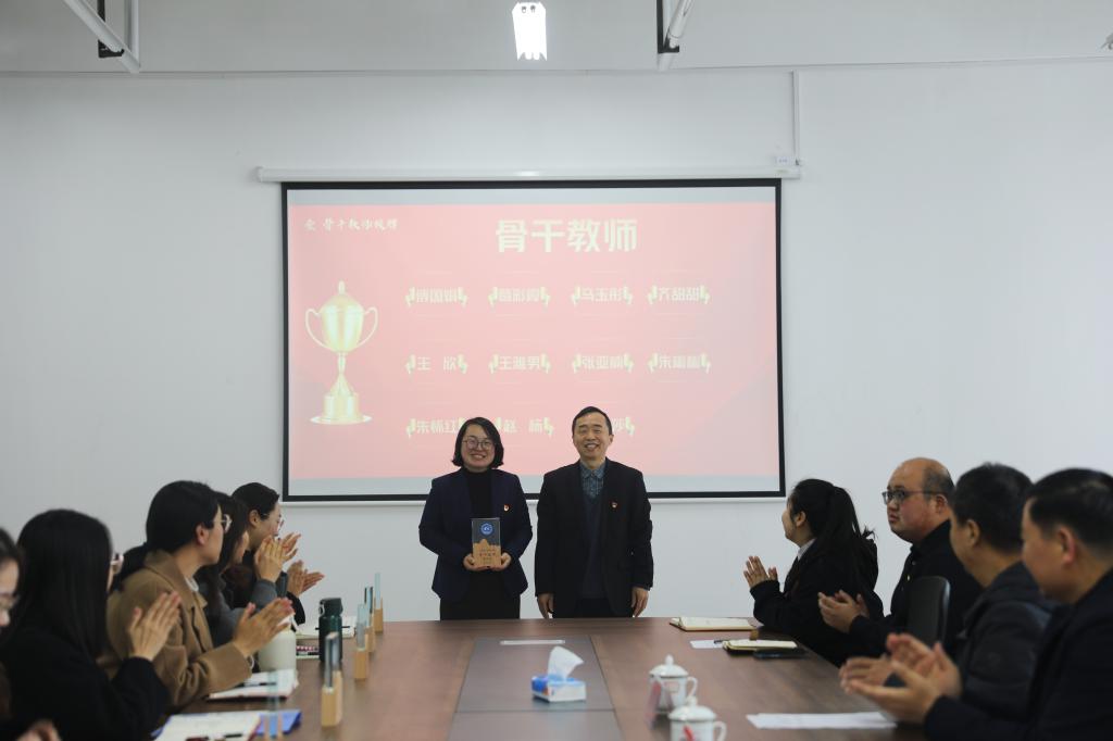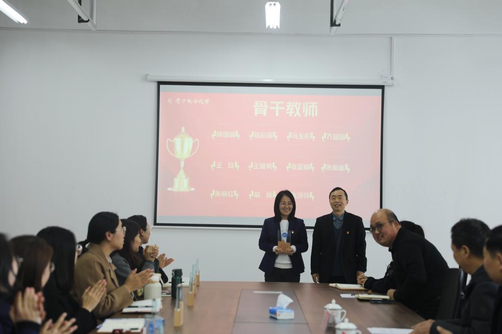 冯喜成副校长为第一批骨干教师授牌,潘慧副书记为金牌辅导员授牌。骨干教师代表王雅男和金牌辅导员代表赵杨分别作表态发言,他们将发挥榜样引领作用,凝心聚力,踔厉奋发,全力推动学校教育事业的高质量发展。