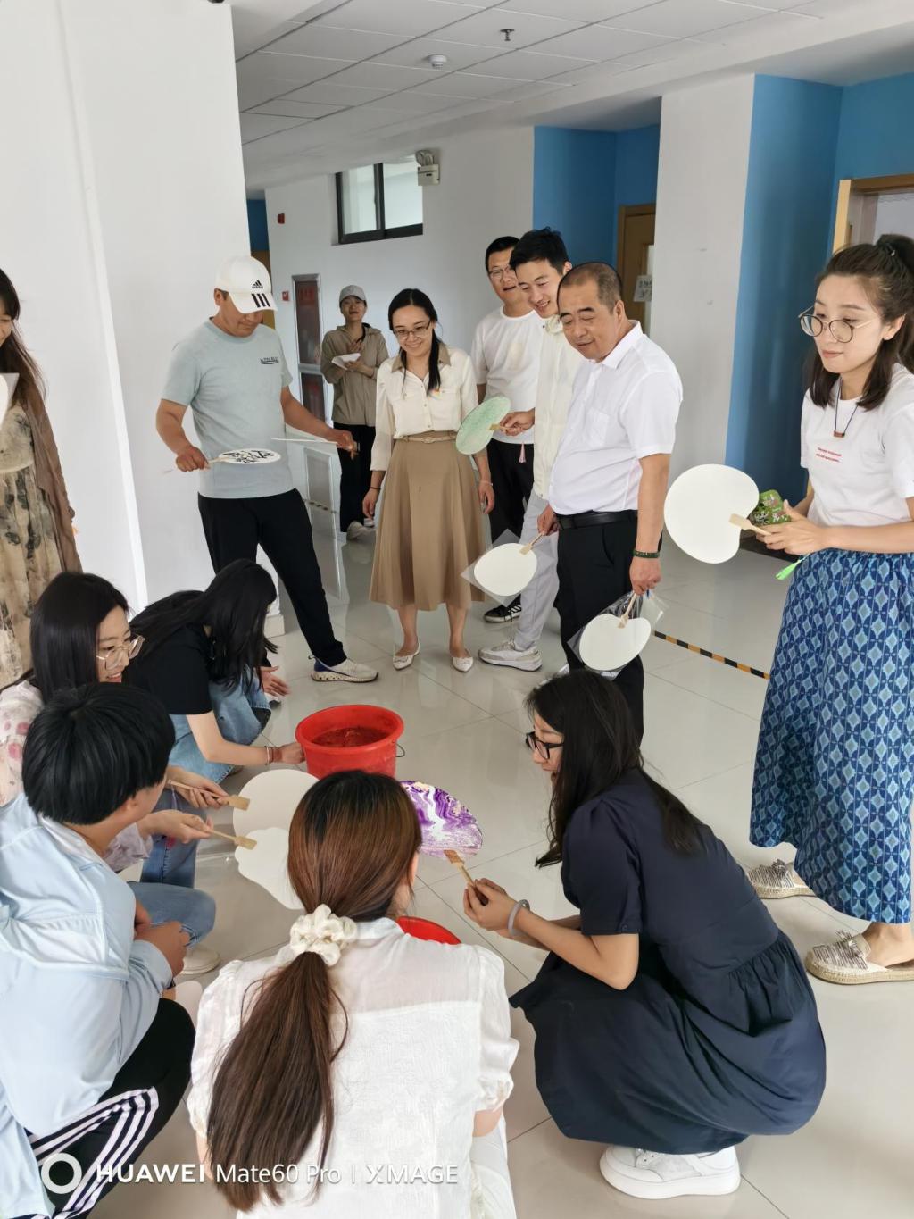 在社团小老师的指导下,教职工们全身心投入,有的细致地在扇面上勾勒图案,有的则大胆挥洒色彩,创作出一幅幅既有传统韵味又不失个人风格的漆扇作品。活动过程中,参与者不仅相互交流漆艺技巧,还分享了各自对端午节的回忆与情感,使得整个空间洋溢着温馨与欢乐。