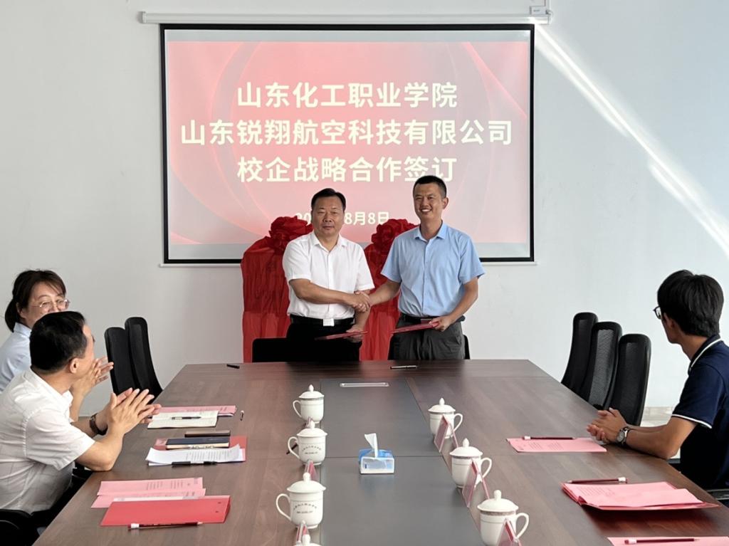 8月8日上午,我校与山东锐翔航空科技有限公司共建“无人机联合研发中心”“无人机实习实训基地”正式签约揭牌。山东锐翔航空科技有限公司董事长苑光刚、总经理王蔚苒,学校校长贺志强、常务副校长冯喜成出席仪式。