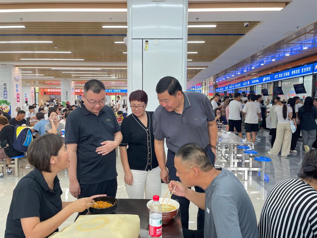 午餐时间,孔祥奴、贺志强走进餐厅查看了餐厅环境卫生、各窗口提供的饭菜种类、食品价格,重点关注了食品安全保障服务。随后,他们与前来就餐的学生和家长围坐在一起,一边吃饭一边话家常,问询他们饭菜价格、对饭菜满意度,了解他们的入学报到情况和对大学生活的期待,聆听他们的需求与意见,鼓励新生们要珍惜大学时光,刻苦修炼技艺与本领,早日实现人生理想,为国家和社会做出应有贡献。