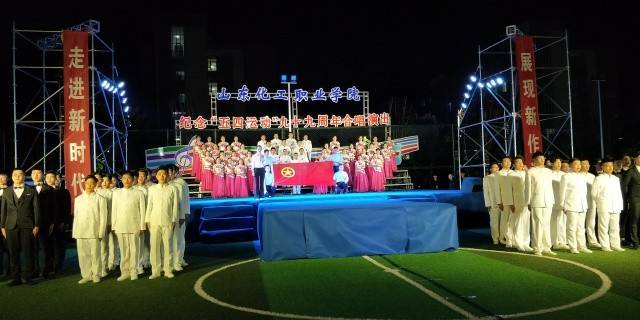 5月3日晚上,山东化工职业学院纪念五四运动99周年合唱演出在足球场隆重举行,学院领导王敬良、李欣、潘慧、耿晓明与全体师生2000余人一起观赏了这场颇具校园文化气息而匠心独特的视听文化盛宴。