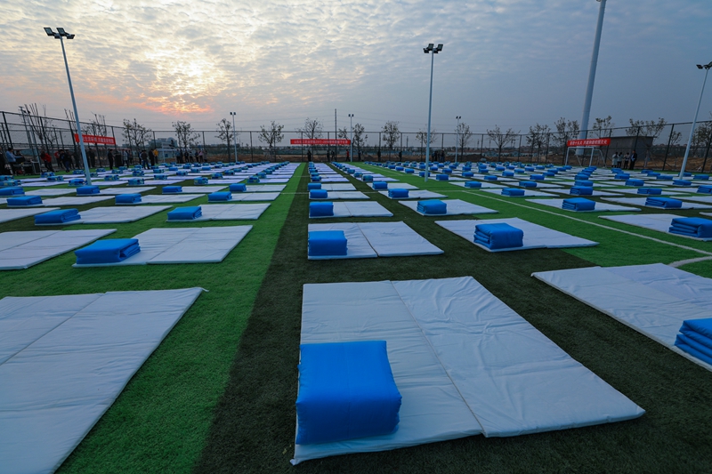 仿佛是为了更好地烘托气氛,今天滨海的天气特别晴朗,鱼鳞状的白云镶嵌在湛蓝的天空中。新建的绿茵场上,一张张雪白的床垫好像绽放的花朵,参赛的同学们早早来到赛场,等待着比赛开始。