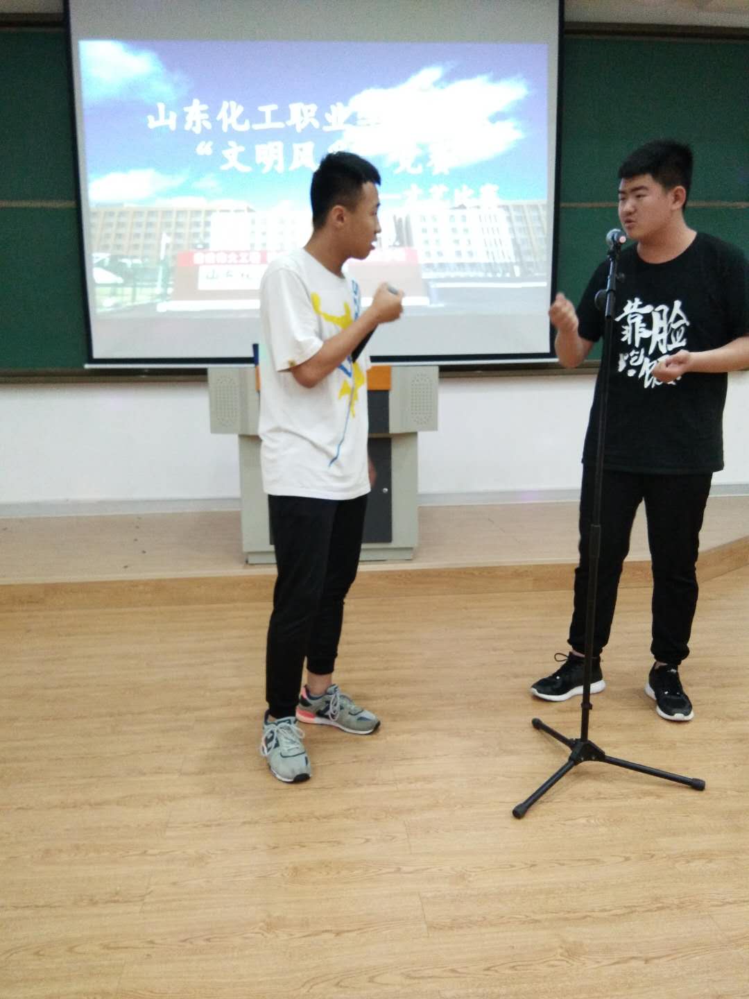 5月16日下午3:30在多媒体2举办了中职“文明风采”竞赛——才艺比赛,辛建平主任、韩志斌老师、赵扬老师以及8个班的班主任受邀做了评委,各班部分学生观看了比赛,评出了优胜奖。