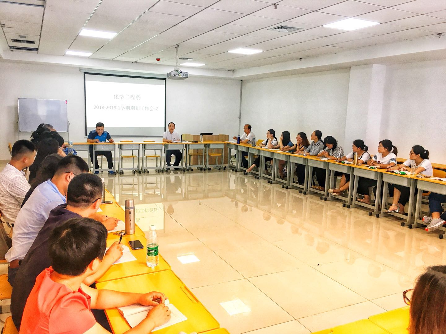 2018年8月31日,化学工程系召开了新学期第一次系全系教职工大会。本次大会由冯喜成主任主持,吕宜春副主任、葛彩霞副书记及化学工程系全体教师参加了本次会议。