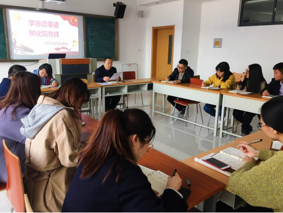 会议开始,冯喜成书记着重讲述了徐迈同志的先进事迹,号召全体党员教师要深刻学习徐迈同志“视档案如生命”“责任重于泰山”的精神。冯主任强调,党员教师不仅要学习徐迈同志忠诚担当、敢于负责的政治品格,还要学习他恪尽职守、任劳任怨的实干精神,更要学习他艰苦朴素、清正廉洁的道德情操。全体党员要始终牢记共产党人的初心和使命,立足本职,真抓实干,以徐迈同志为榜样,知行合一,严于律己,传承忠诚尽责担当的崇高品质,通过大家的共同努力将化学工程系的建设和各项工作提高到一个新的水平。全体党员教师就如何向徐迈同志学习、怎样用实际行动践行新时代共产党人应有的拼搏担当奉献精神等问题展开了热烈讨论。