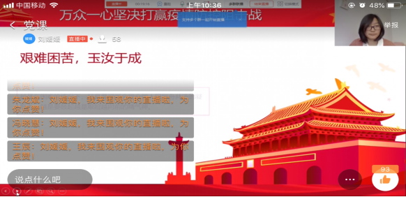 党员教师刘媛媛说:“全体学生共同学习了习近平总书记对疫情防控的部署要求:加强党中央集中领导,加强疫情联防联控工作,并且始终将人民群众生命安全和身体健康放在第一位,贯彻‘坚定信心、同舟共济、科学防治、精准施策’十六字抗击疫情方略。”