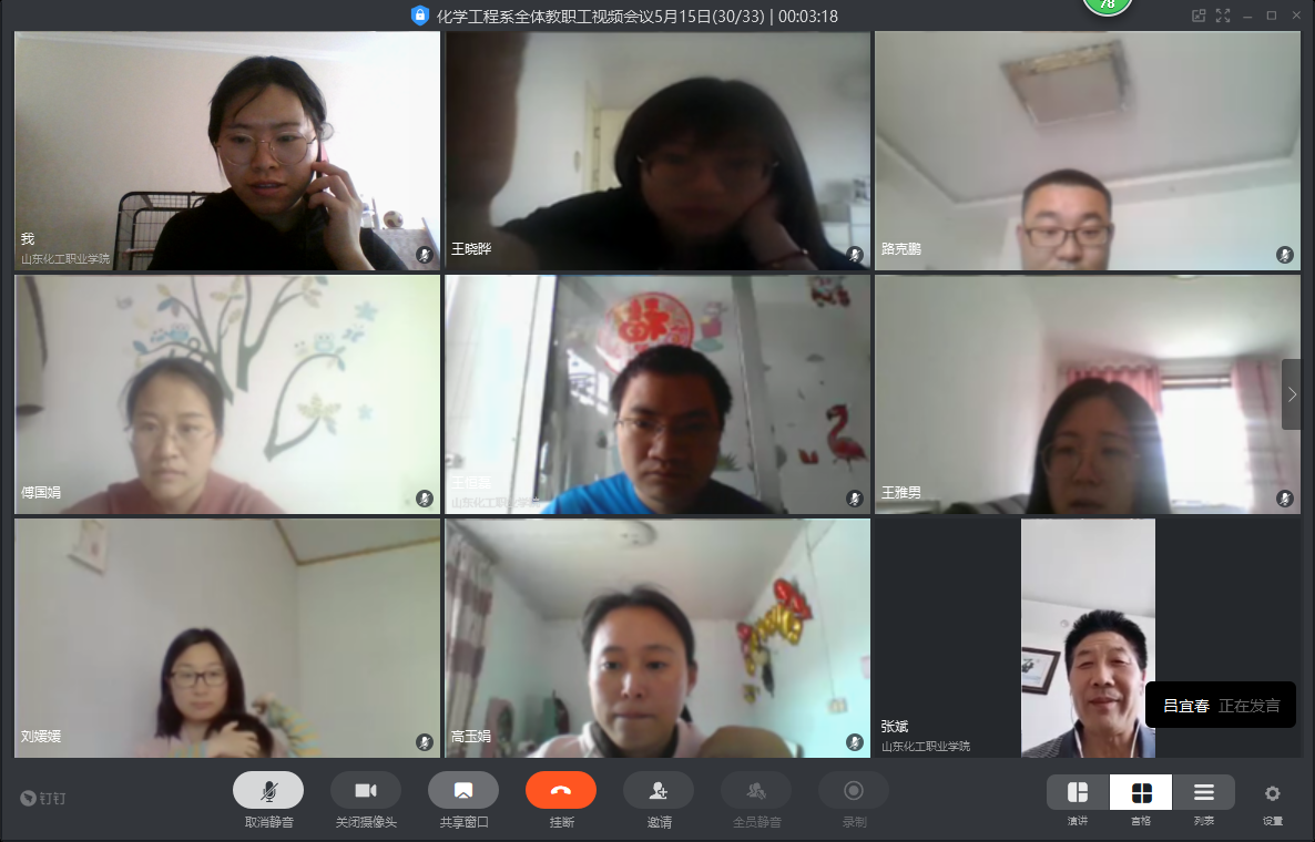 化学工程系吕主任总结了各教研部主任的发言,并表示,我系全体教师要认真对待这次考核,按照葛彩霞同志解读的内容,不断加强自身专业能力的提升,找准方向,扎实推进,争取在教学、科研、产教融合等各方面取得更大的进步。另外,吕主任就近期需要开展的工作进行统筹要求,一、全体教职工做好开学准备;二、教师要做好各课程线上线下教学衔接;三、各专业做好开学后学生仿真实训的课程准备工作;四、招生工作迫在眉睫,包括春招、夏招、单招等,认真落实单招考试相关工作;五、准备好创新创业大赛、技能大赛等学生比赛和精品资源共享课设计大赛、微课大赛等教师比赛。
