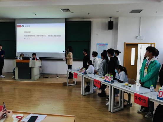 每场比赛共设计100道客观题,其中理论必答题每组6道,每名队名必答2道;抢答题分为判断题、单项选择题和多项选择题。在计时器开始计时后,各小组分别按响抢答器,抢答成功,即可答题,答对得2分,答错或犯规均扣2分。