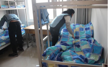 整理内务能提高生活自理能力,培养思想上的自立和独立,还能帮助养成严格自律的良好习惯,下图为同学们在寝室里整理内务。