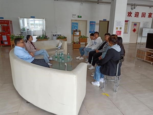 接下来,吕院长携两位老师带着新进的教材来到学生公寓,分别对2020级校企共育的159名学生和2019级跟岗实习的129名学生进行走访座谈。听闻学院领导的到来,学生倍感亲切,一路小跑着来迎接老师。收发完教材,吕院长和两位老师由学生引领着来到他们上课的教室,正值王梦莹老师给学生上课,看到学生认真的样子,吕院长和两位老师不忍打扰。教室下面是免费体育场和健身房,学生脸上洋溢着自豪与满足的表情,好像在告诉老师我们在这里生活的很好很充实……看到学生如此丰富多彩的课余生活,吕院长的脸上露出了欣慰的笑容。在与跟岗实习学生的座谈中,老师们了解到杨冰同学在9月份的考试中得了班组第一名,受到企业领导和指导师傅的一致好评!