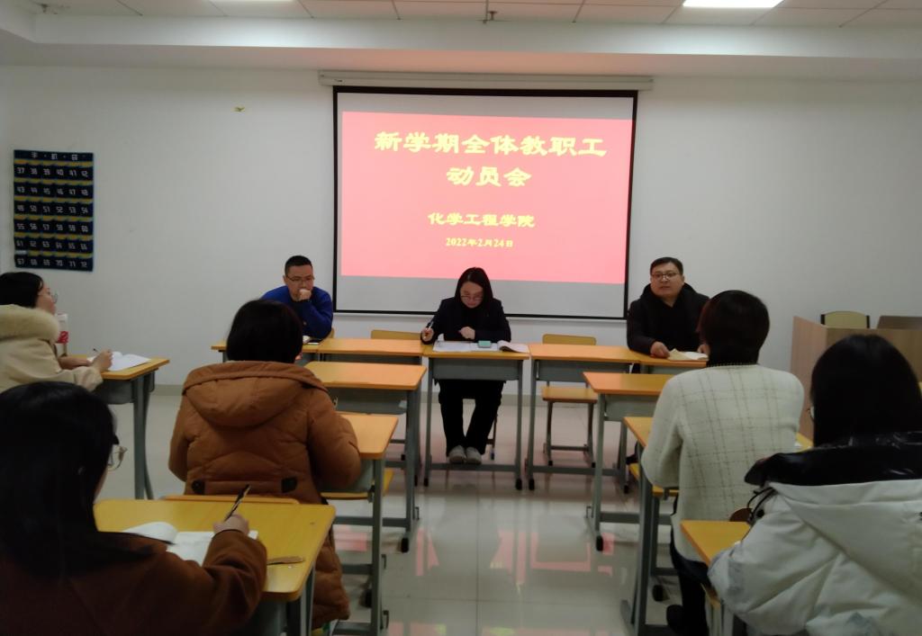2022年2月24日下午,化学工程学院组织召开了2022年春季新学期工作动员会。会议由学院党总支副书记王恒磊同志主持,学院全体教职工参加。