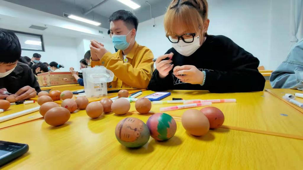 “一年一度春草绿,又是一年清明时。”清明节本是让同学们回家祭扫祖先弘扬孝道和缅怀先烈的日子。然而,今年清明节有点不一样。目前,疫情防控压力增大,为响应号召我校要实现“共抗疫情,平安清明”的目标,所以让同学们在学校过清明。与此同时,为了提振学生们的士气,学校团委组织部分学生干部和党员教师参加为鸡蛋涂鸦的活动,给学生送去传统节日清明节的一份关爱。