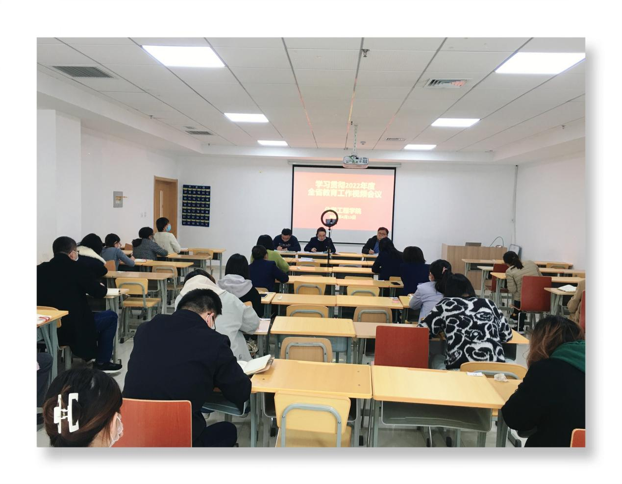 2022年4月13日下午,化学工程学院通过线上、线下相结合方式,在2308组织召开学习贯彻2022年度全省教育工作视频会议。会议由化学工程学院党总支副书记王恒磊同志主持,学院全体教职工参加。
