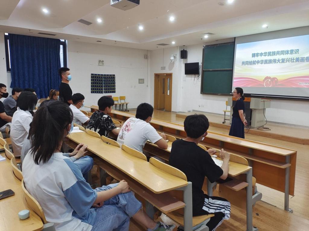 为深入学习习近平总书记关于民族工作的重要论述,加强铸牢中华民族共同体意识教育,持续推进党史学习教育走深走实,牢固树立正确的祖国观、民族观、文化观、历史观,同时献礼党的二十大,5月27日下午18:30,化学工程学院党总支副书记葛彩霞同志在第一阶梯教室,利用线上线下形式,讲授“铸牢中华民族共同体意识 共同绘制中华民族伟大复兴壮美画卷”的主题党课,旨在引导大家牢固树立“三个离不开”“五个认同”思想,铸牢中华民族共同体意识,在全院营造民族团结进步的浓厚氛围。2021级入党积极分子参加了学习。