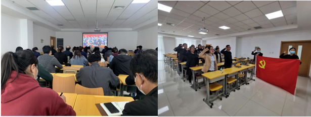 全体党员同志、入党积极分子和学生代表全程都认真聆听、记录、学习。开幕式结束后,全体党员同志再次重温入党誓词,以表入党初心,由葛彩霞同志领誓。同志们纷纷表示,十年成就鼓舞人心、宏伟蓝图催人奋进,新征程上我们会不负使命,争取更大荣光。