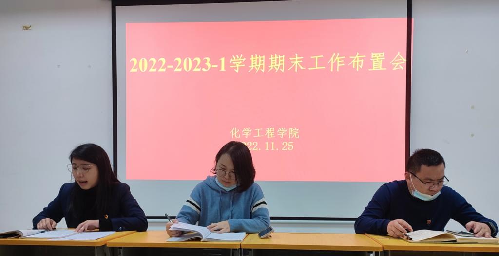 2022年11月25日下午,化学工程学院通过线上、线下相结合方式,在2308组织召开了2022-2023学年第一学期期末工作布置会,旨在进一步端正考试风气,严肃考试纪律,加强我院考试的组织与管理工作。会议由化学工程学院副院长葛彩霞同志主持,全体教职工参加。
