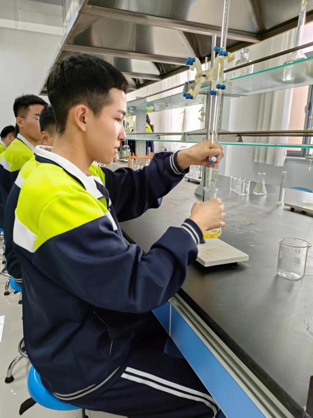 在化学分析项目体验环节,老师详细讲解了仪器、药品的正确使用方法和操作规范,实训的具体步骤和操作技能和技巧、安全事项,学生明确工作任务后,认真专注操作,增强了学生严谨科学和工作态度,培养学生树立认真、刻苦、一丝不苟的精神。