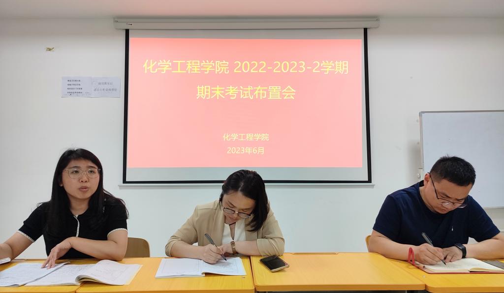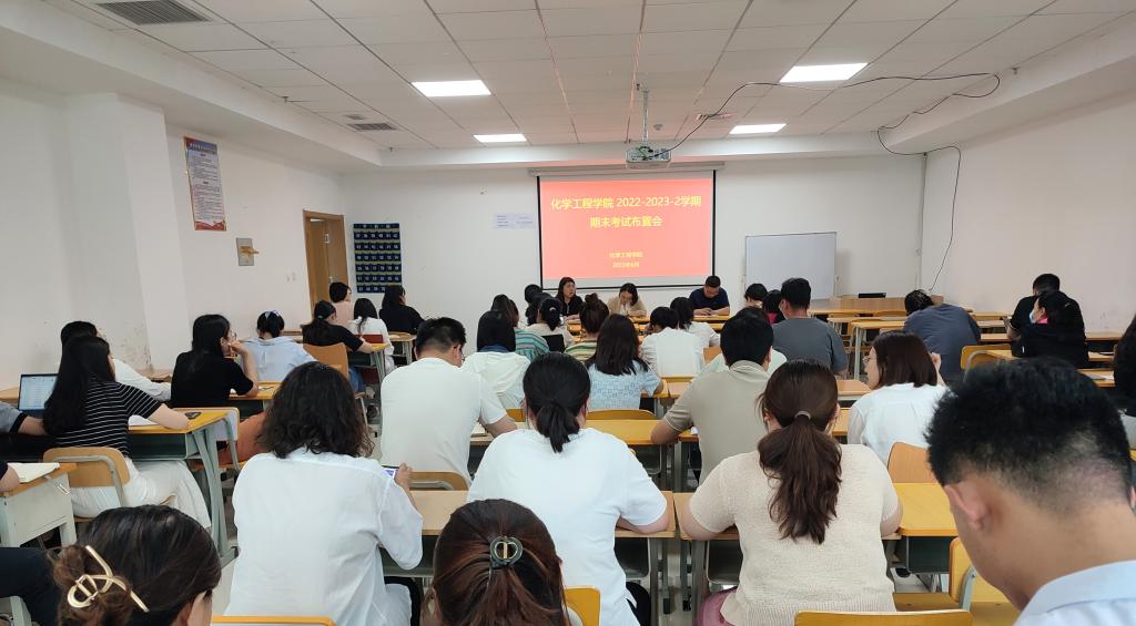 为进一步端正考风考纪,严肃考试纪律,加强我院考试的组织与管理工作,2023年6月19日下午,化学工程学院在2308组织召开了2022-2023-2学期期末考试布置会。会议由化学工程学院副院长葛彩霞同志主持,全体监考教师参加。
