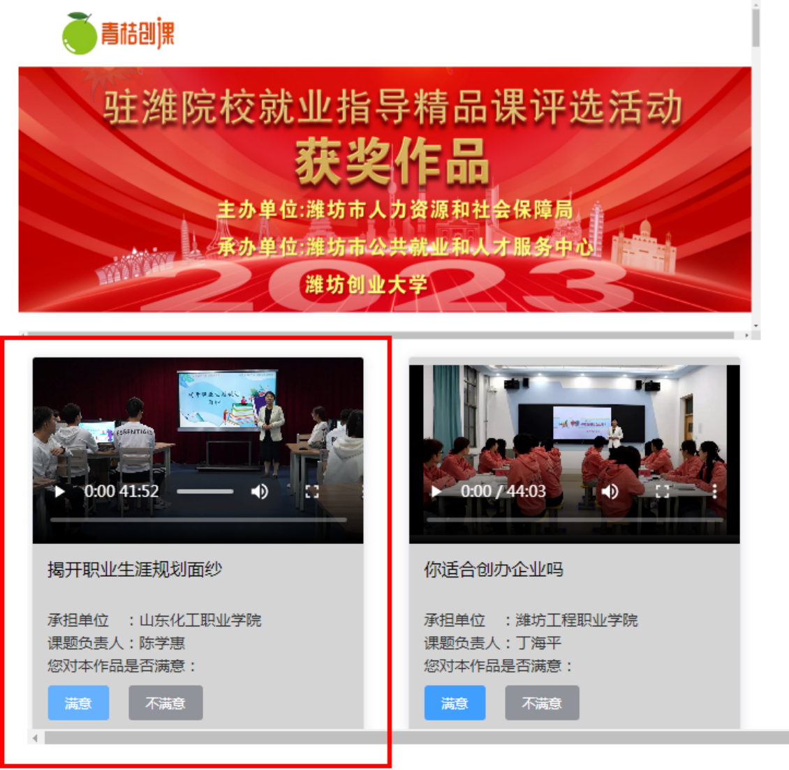 近日,由潍坊市社会科学界联合会举办的2023年度潍坊市社会科学规划重点研究课题、专项研究课题发布了拟结项名单、优秀课题和获奖课题名单公示,“就业指导精品课”专项课题共有80项通过鉴定结项,30项获奖,其中获金课奖10项,银课奖10项,优秀建设奖10项。化学工程学院陈学惠、王欣项目团队申报的《揭开职业生涯规划面纱》荣获金课奖,获奖课程同步发布在青桔创课平台。