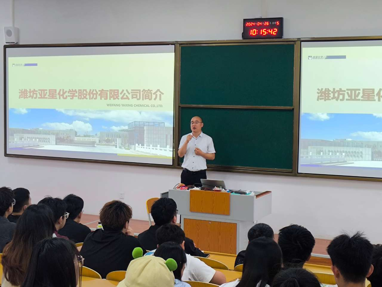 近日,化学工程学院继续推进校企合作机制,加大名企进校宣讲力度,邀请山东普洛得邦医药有限公司与潍坊亚星化学股份有限公司来我校开展招聘宣讲活动。