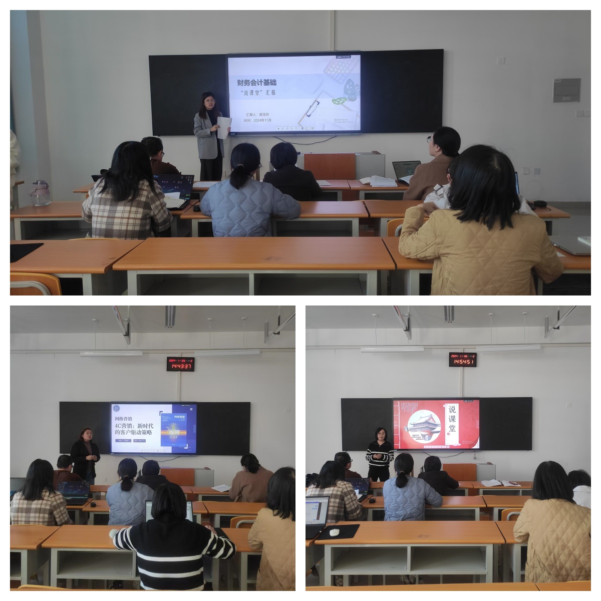 11月5日下午,管理工程学院在4305教室举办第一届“说专业群·说专业·说课程·说课堂”系列活动,本次活动由朱莎莎副院长主持,学院无课教师到场观摩学习。