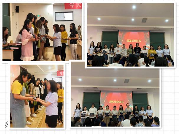 毕业典礼在庄严的国歌声中拉开了帷幕,朱彬彬书记介绍了2019届毕业生毕业情况,并宣读山东省优秀毕业生名单。孟祥云主任向获得山东省优秀毕业生的同学颁发荣誉证书,并向全体毕业生逐一颁发了毕业证书。