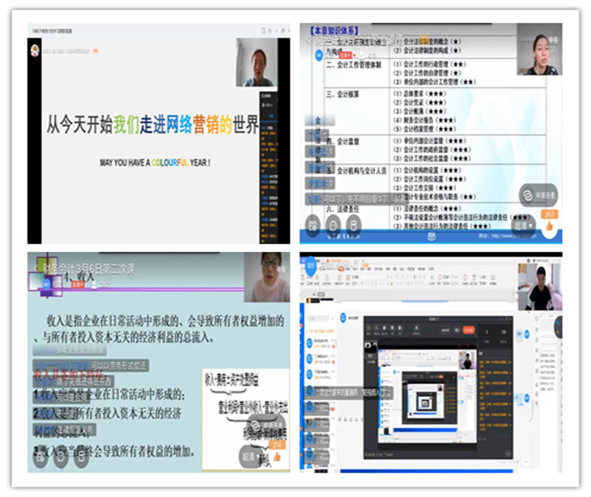 课上老师认真讲解,学生互动兴致盎然。课程开展主要借助“钉钉”平台进行线上互动。在老师的授课引导下,采用“问题导入法”、“任务驱动法”、“案例讨论法”等多种教学方法,激发学生们的学习热情,引导学生积极参与课程学习,积极参与到课堂互动,话题讨论,学生线上学习兴趣盎然。学习过程中,学生认真听讲,做好学习笔记。
