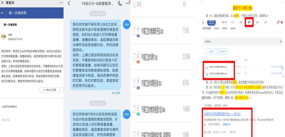 课前教师精心准备,提前上传学习资料。上课前,各专业老师精心备课,借助“课堂派”于课前发布学习资料,如课件、教学计划、疫情防控期间教学方案、电子教案、拓展学习资料等课内外资源供同学们提前预习。系要求教师至少提前1天上传下次课程学习明白纸及课程学习任务书,指导学生怎么学、学什么、如何学,并发布课堂派公告及钉钉群通知,提醒学生及时下载,提前做好学习规划。课前进行任务驱动,实时掌控学生预习情况,通过学生反馈情况,课上重点解决学生的疑难问题。同时,查看未完成预习的同学,课前督促学生及时完成预习。