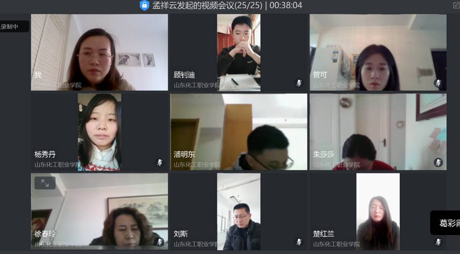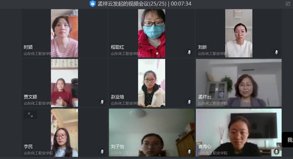 孟主任结合学院和系工作重点,分享了2020年山东教育工作会议和“抓防控与谋发展“两手抓、两手硬”文件精神。孟主任指出系内教职工要清醒认识疫情防控严峻复杂形势,全面做好师生风险排查、延期开学期间教学与学生管理工作的同时,统筹谋划开学工作、有序推进年度教育重点工作。按照会议精神, 系内部分人员已经开始返校工作,其他人员随时做好返校工作准备。楚红兰主任和大家学习了线上教学的相关文件精神,对线上教学的方式方法、经验进行了总结分享。