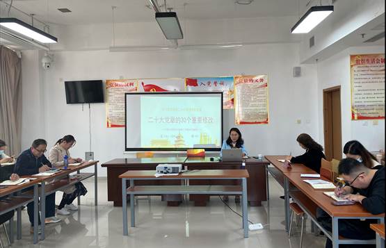 坚持领学促学,邀请宣讲团队成员宣讲。山东化工职业学院党委委员、财务处处长李凤娟以《学习二十大,共创新征程》为题,向全体党员对二十大进行了全面深入的宣讲。