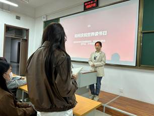 读书分享开始,首先由学生代表分享“世界读书日”的由来、意义等,让同学们深入领会到了读书的重要性。