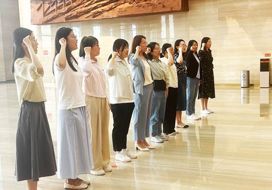 潍坊市党史教育馆以“使命·担当”为主题,设四个主展厅。展馆序厅,灯光柔和而庄重,氛围肃穆而神圣。党员们在此重温了入党誓词。“请所有党员面向党旗,举起右拳跟我宣誓...”,宣誓仪式由朱彬彬书记领誓,整齐庄重的动作,洪亮清晰的誓词,表达着党对人民、对共产主义事业的无限忠诚,也唤醒了每一位党员内心深处的信仰与使命。