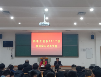 2019月3月20日,机电工程系在六号阶梯教室召开工学交替动员大会,2017级全体同学以及机电工程系主任彭爱玲、副主任常永清,辅导员赵杨、赵灵筠,工学交替跟岗教师杨硕林和于志平参加会议。