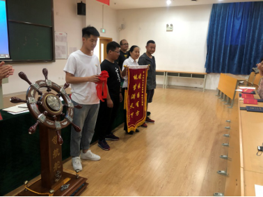就在这一刻,台下的学生代表涌上主席台向机电工程系送上了锦旗和领航舵。锦旗上面写着的是“授教固有方,桃李满天下”,表达的是学生对老师们的感恩,对学校的祝福。领航舵上面篆刻着“饮其流者思其源,学其成时念吾师”充分的表达着学生们对老师们发自内心的感谢。