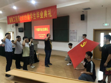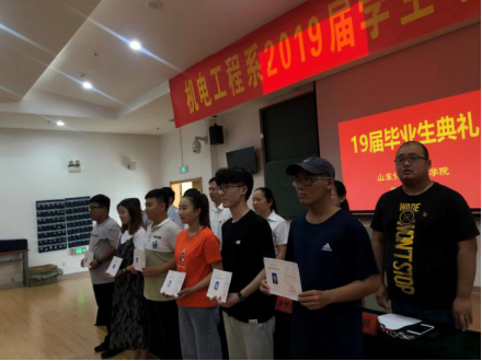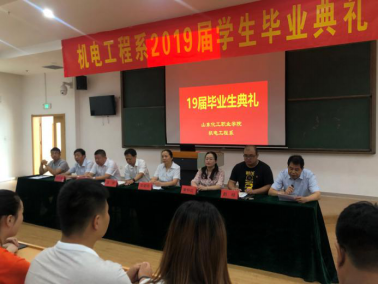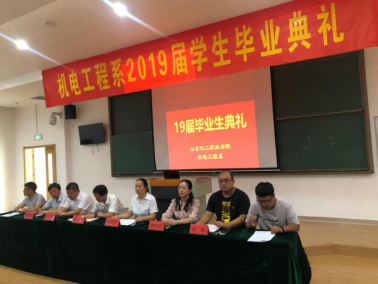 7月10日上午10点,山东化工职业学院机电工程系2019届学生毕业典礼在5号阶梯教室举行。学院党委副书记潘慧,机电工程系党支部书记、系主任彭爱玲,机电工程系副主任常永清,基础教学部主任、体育教学部主任、现代信息中心主任、2016级辅导员沈威,学生工作处干事、2016级机械专业辅导员朱怀红,2016级机电辅导员赵杨,机电工程系全体教师出席了此次毕业典礼,典礼由机电工程系党支部副书记、主任助理刘凯主持。
