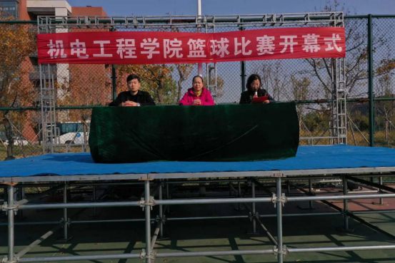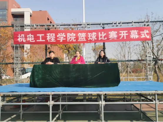 会议进行第二项:由机电工程学院院长彭爱玲致辞并宣布机电工程学院篮球比赛正式开始。