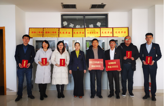 会议中,彭院长会同范书记对机电工程学院在表彰大会中获得优秀教师的周大安、李广源、杨东燕、乔艳梅、赵杨,招生工作先进个人范兴凯,金牌教师刘凯,金牌辅导员赵杨,就业工作先进个人刘凯提出表扬鼓励,并号召学院全体教职工向他们学习,争先创优,为学院工作推进与发展贡献自己的力量。