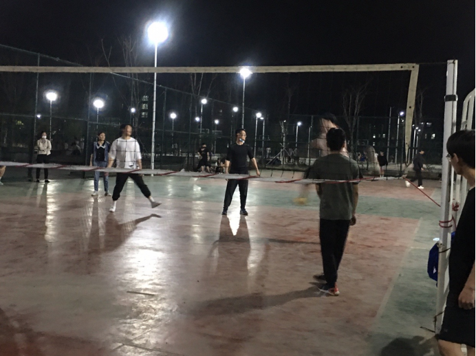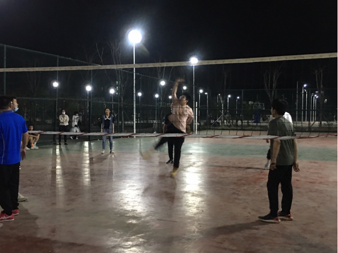从日暮初斜到灯火灿烂,活动逐渐白热化,吸引了很多老师和学生参与进来。热烈的气氛蒸腾着欢快的汗水,两队师生激烈交锋,双方队员斗志高昂,呼喝加油、团结一致,将排球活动拉入了长久的加时赛。场上队员和场下观众的情绪都被极大的调动了起来,让球场宛如在进行一场空前热烈的比赛。在疫情仍需坚持的现在,挥洒汗水的快乐让大家紧绷的神经得到了稍适的舒缓。