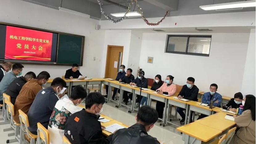 2022年11月11日下午,机电工程学院党总支召开党员大会,集体学习宣传贯彻党的二十大精神。会议由党总支副书记范兴凯同志主持,党总支全体党员参与学习。会上,范兴凯同志详细介绍了党的二十大概况,学习了党的二十大报告,传达学习了王敬良校长在学校党委理论学习中心组(扩大)会议上的发言,集体观看灯塔大课堂《学习贯彻党的二十大精神,要做到“五个牢牢把握”》,并结合工作实际,对认真学习宣传贯彻党的二十大精神提出具体贯彻意见。