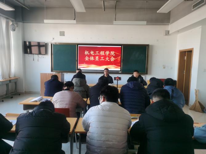 2023年2月19日上午,机电工程学院召开2022-2023学年第二学期开学全体员工大会,机电工程学院全体教职工参会。会议主要围绕王敬良校长在全校教职工大会上的讲话精神和学校2023年重点工作任务,对机电工程学院新学期的工作进行了部署及安排。