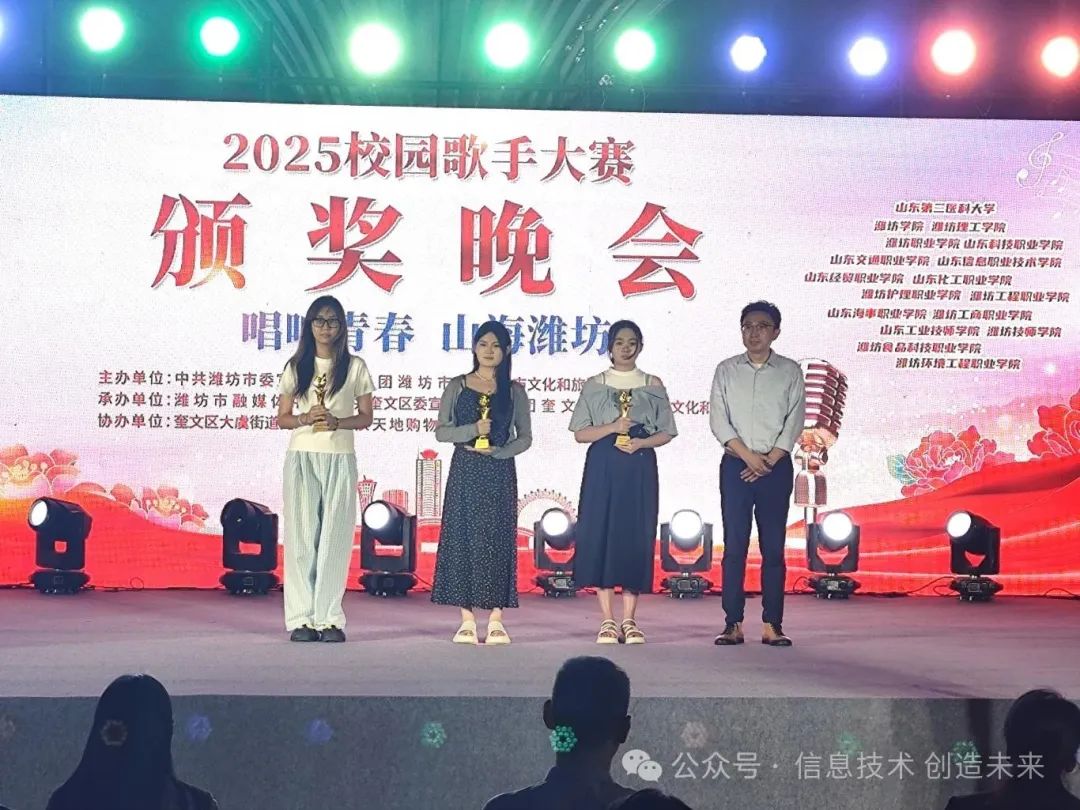 青春旋律激昂,校园歌声嘹亮!在2025潍坊高校大学生校园歌手大赛“唱响青春 山海潍坊”的舞台上,信息工程学院参赛学生用热爱与实力,荣获“最佳人气奖”,留下属于我们的精彩篇章。