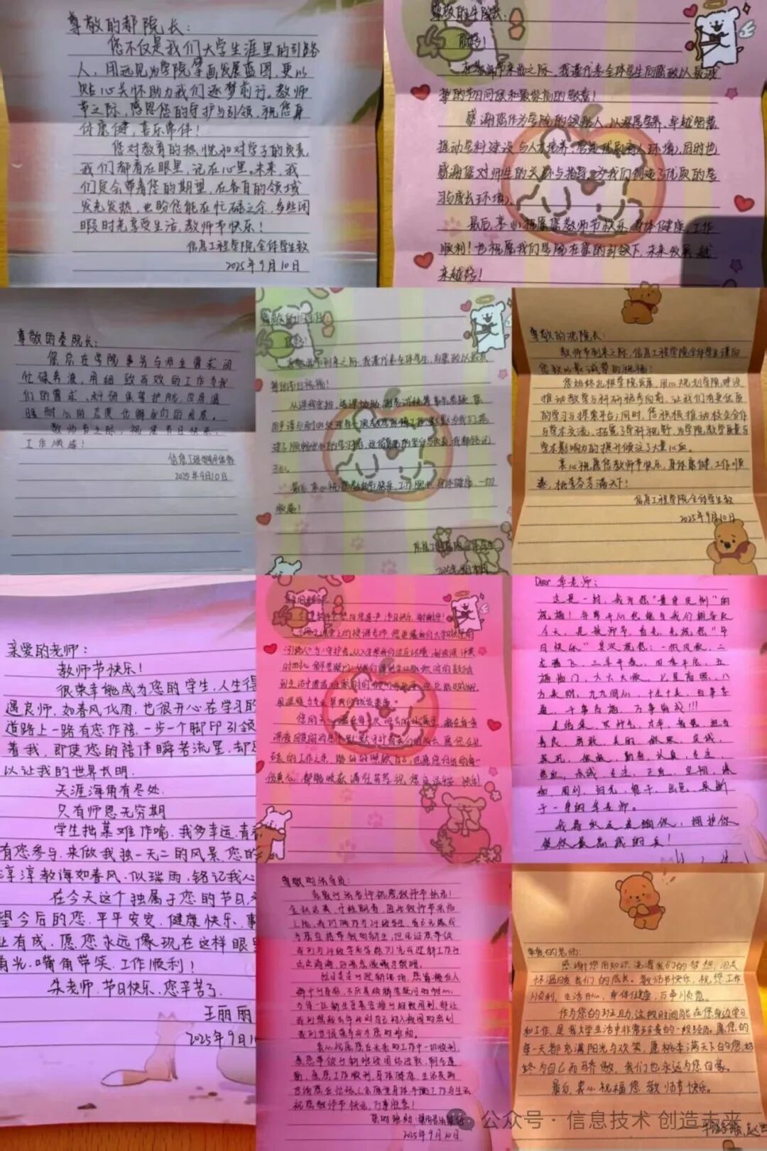 为学生的信息之路点亮明灯。值此教师节,信息工程学院全体学子再次向所有老师道一声:“老师,您辛苦了!教师节快乐!” 愿这份来自笔尖的温暖,伴随老师在教坛继续书写精彩,也激励着信息工程学院学生在逐梦途中,以更优异的成绩回馈师恩,共筑学院荣光!