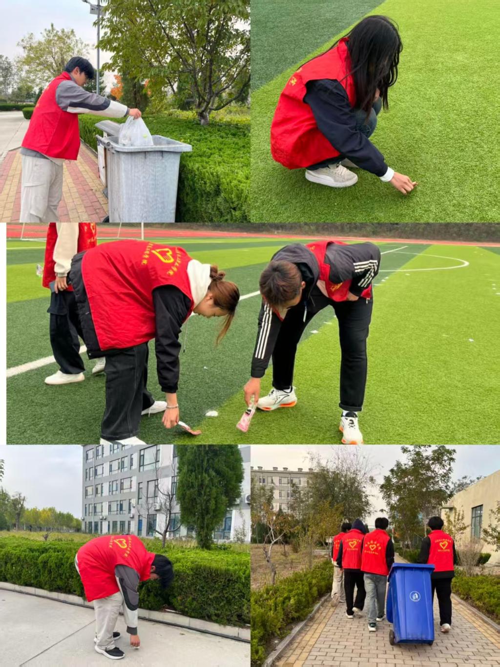 行动前,学生干部明确重点清扫区域,细化分组分工。他们身着志愿服,弯腰俯身清理每一处卫生区域。大家分工协作、默契配合,忙碌的身影与整洁的操场相映,成为校园里极具温度的文明风景。