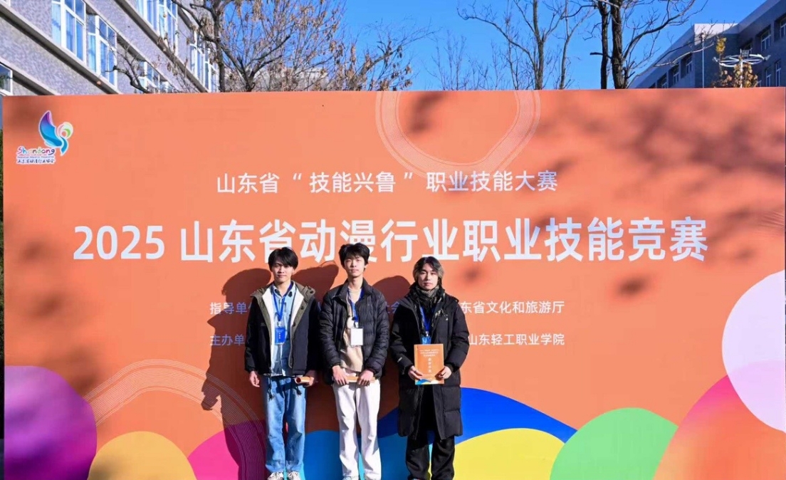 近日,在山东省“技能兴鲁”职业技能大赛——2025年山东省动漫行业职业技能竞赛中,我校学生张传振、汤翱铭、杨咏鑫凭借扎实的专业功底和创新的艺术表达,斩获一等奖1项、二等奖2项,充分彰显我校在数字媒体技术领域的育人成果。