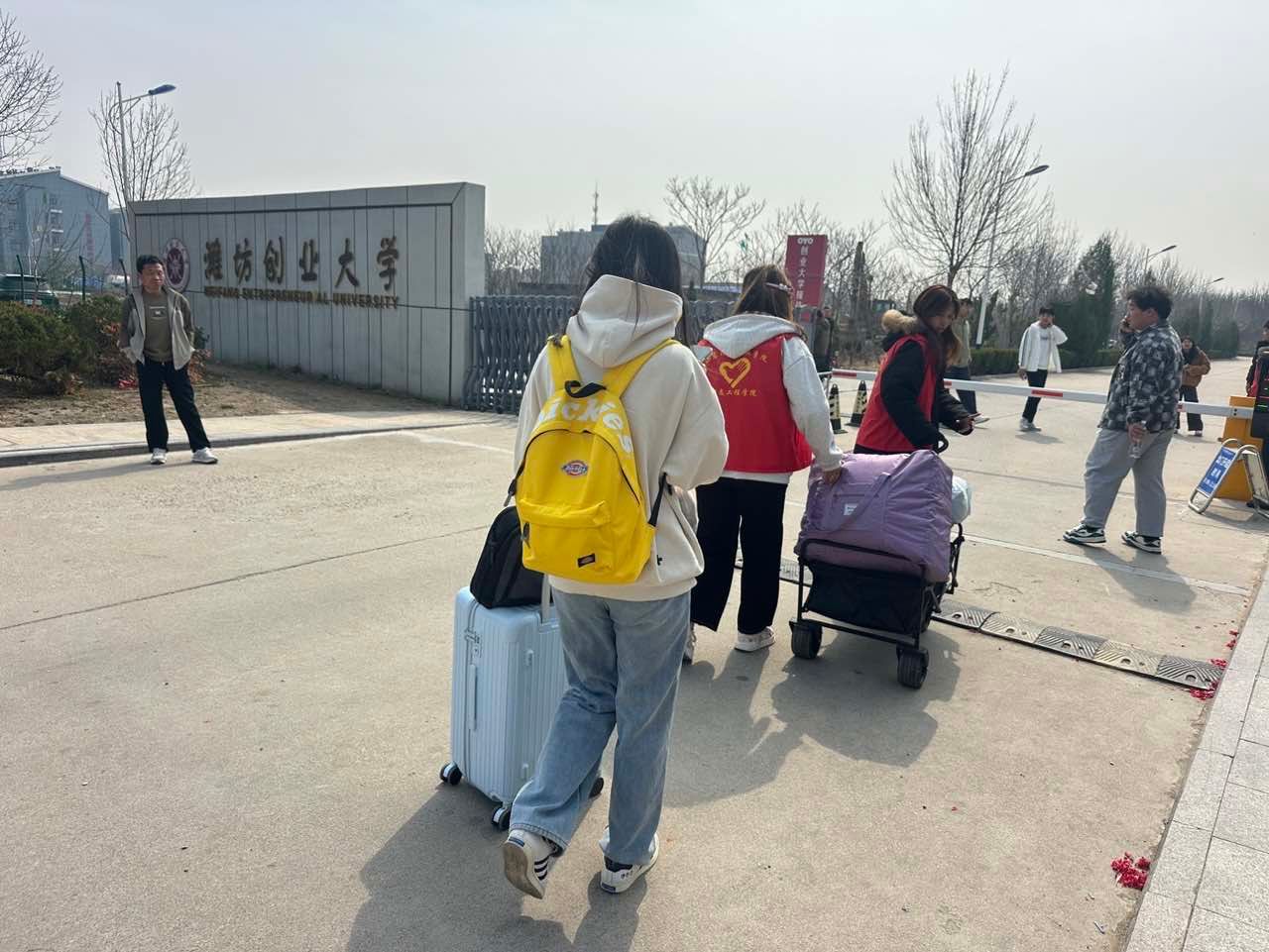 随着学生陆续返校,志愿者又化身“暖心搬运工”,在学院门口热情迎接归来的学子。大家主动上前、搭手相助,往返于校门与宿舍之间,用行动传递温暖,让每一位返校学生都感受到来自学院的温馨与归属感。