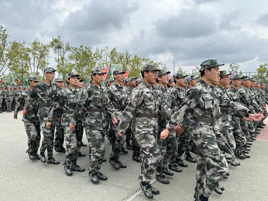 稍息,立正,行进,立定,敬礼,礼毕……烈日长空着戎装,苍穹之下斗志昂。学生身着军服,一令一动,服从指挥。以高昂的士气、抖擞的精神、标准的动作展示着第一阶段的训练成果,整齐的踏步声,熔铸青春最完美的交响。