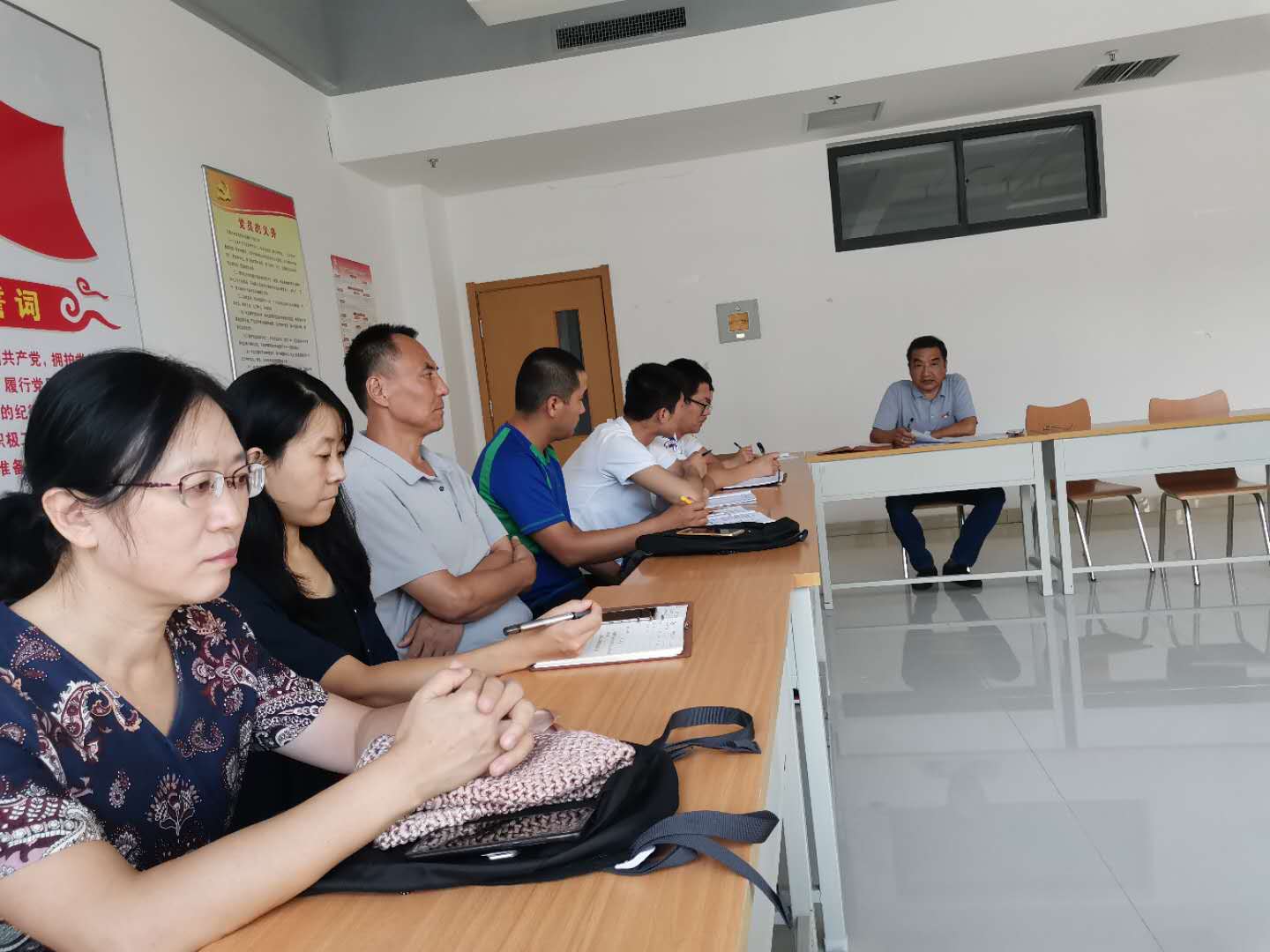9月16日下午,基础教学部教职工大会暨党员大会在4206会议室召开,全体教职工参与了大会,会议由党支部书记李爱国同志主持。